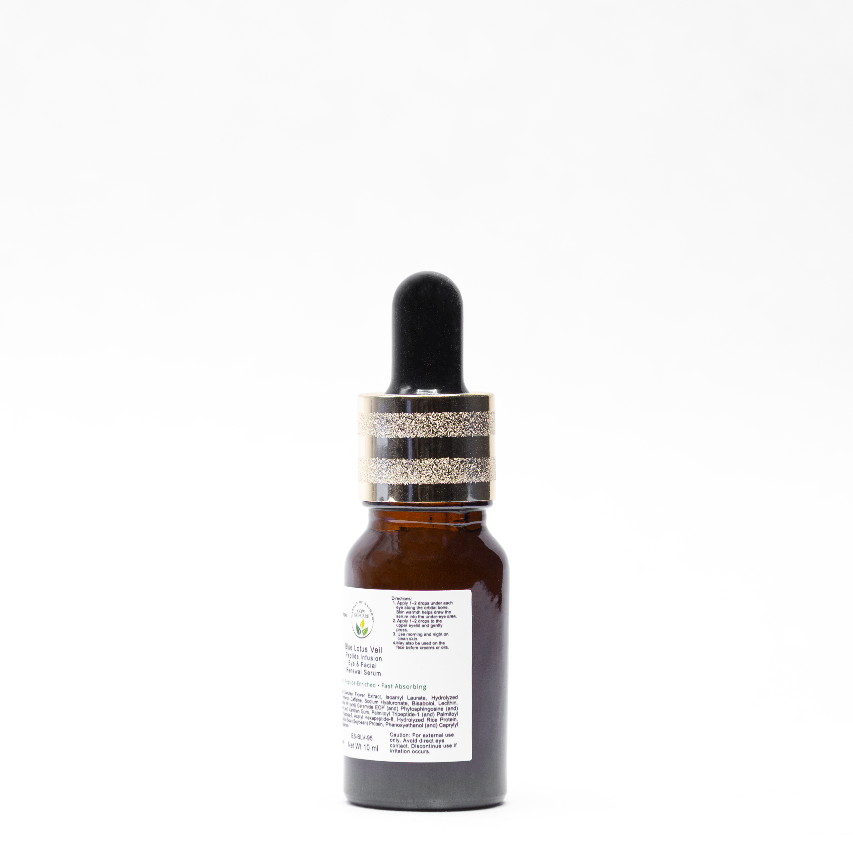 T here are moments when your skin craves stillness, when the world feels too loud, and every product feels overwhelming. Blue Lotus Peptide Infusion: Eye Renewal Serum was born from that silence. Inspired by the resilience of the Blue Lotus, a flower that rises pure from deep waters, this serum combines strength and tenderness in a delicate layer.