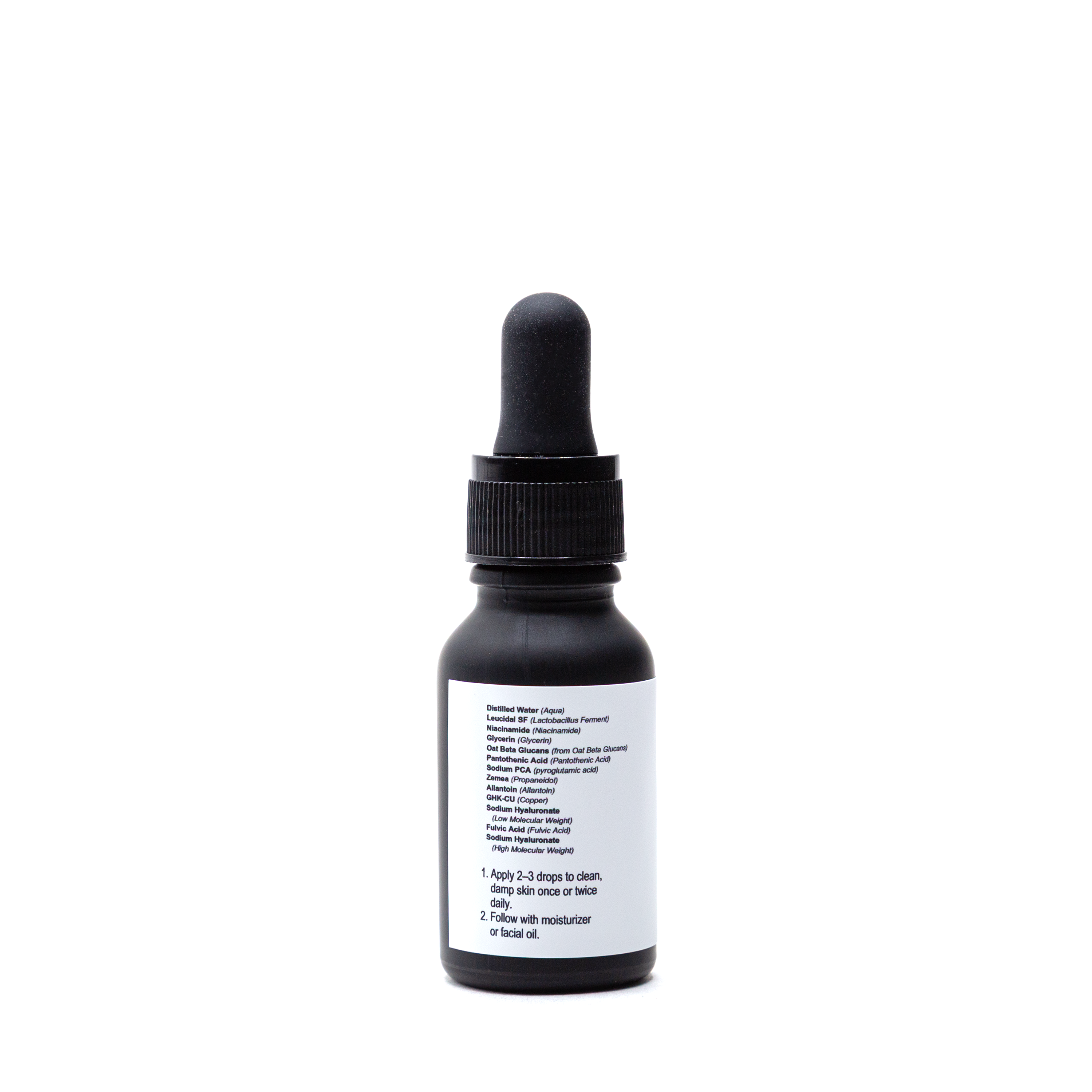 Distilled Water - hydration Leucidal SF - Lactobacillis Ferment) - is a natural probiotic-based preservative created by the fermentation of Lactobacillus in a defined growth medium Niacinamide(B-3) - skin lightening, anti-aging agents, stimulates circulation, anti-inflammatory Glycerin - humectant Oat Beta Glucans - healing, anti-aging, anti-irritant, anti-itch, since it can work through the Cellular Lipid Matrix (the matrix of the lipids) lends itself to diminishing the appearance of fine line and wrinkles, excellent moisturizer with film forming moisturizing properties stimulates collagen synthesis (meaning to create a matrix by combining actual dermis properties synergistically) Pantothenic Acid - wound healing, part of the vitamin B complex